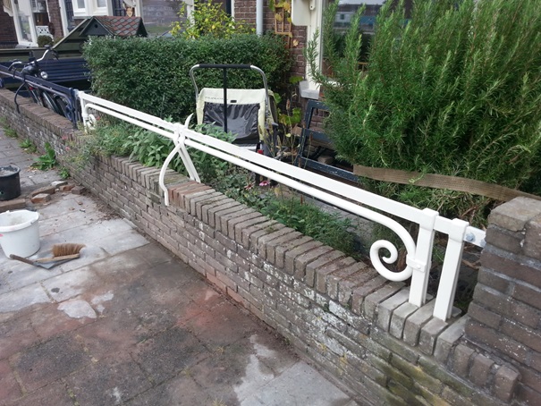 Het geheel is geschopeerd en voorzien van een primer, de klant wilde de eindkleur afstemmen op de kleurstelling van het woonhuis. Het geheel werd kant en klaar opgeleverd en ingemetseld in de bestaande tuinmuur.
